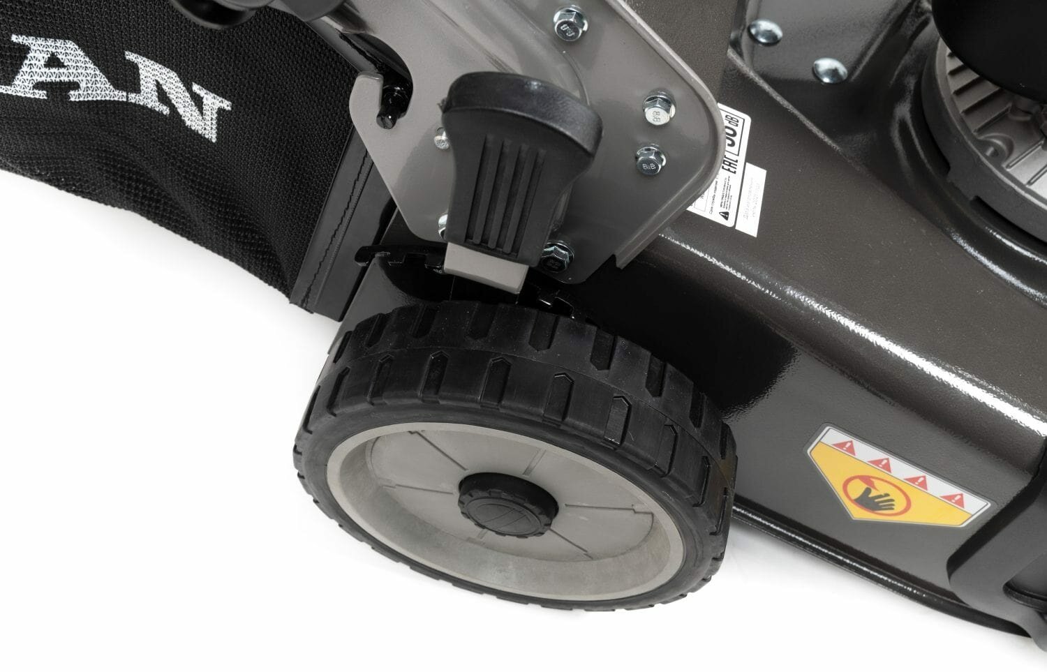 | Дополнительные функции | возможность установки мульчирующей насадки / регулировка высоты скашивания / тормоз двигателя |
