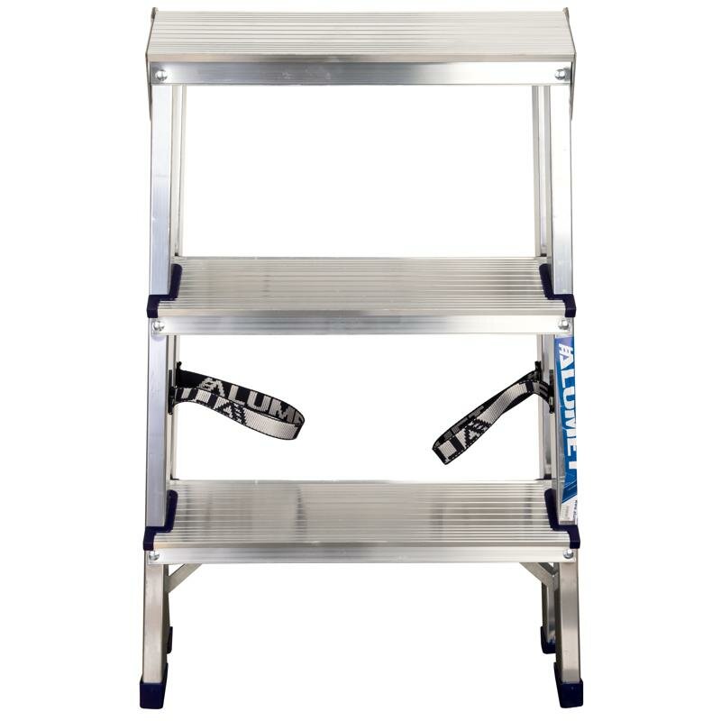 Стремянка двухсторонняя Alumet AD7203, алюминиевая, 2 x 3 ступени, 0,68 м