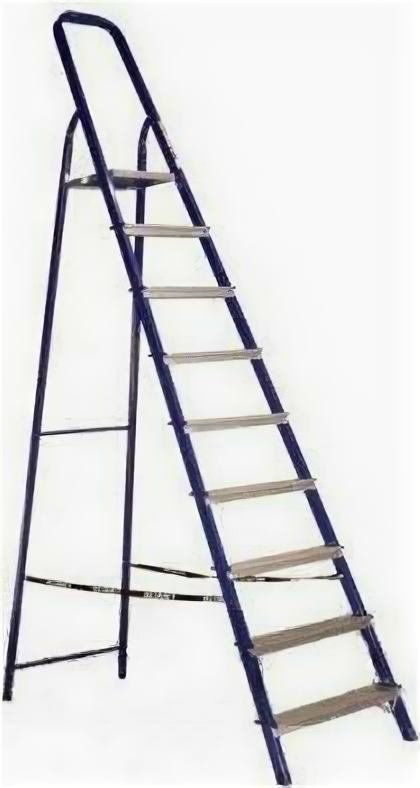Эта стремянка одна из самых высоких в модельной линейке. Тяжеловата, но это и понятно, потому что стальная. Но оценку снизил не поэтому. А потому что для такой высоты она не очень устойчива, пары строп-затяжек внизу уже недостаточно в отличие от стремянок на 4-5 ступеней, и пошире бы сделать. |
