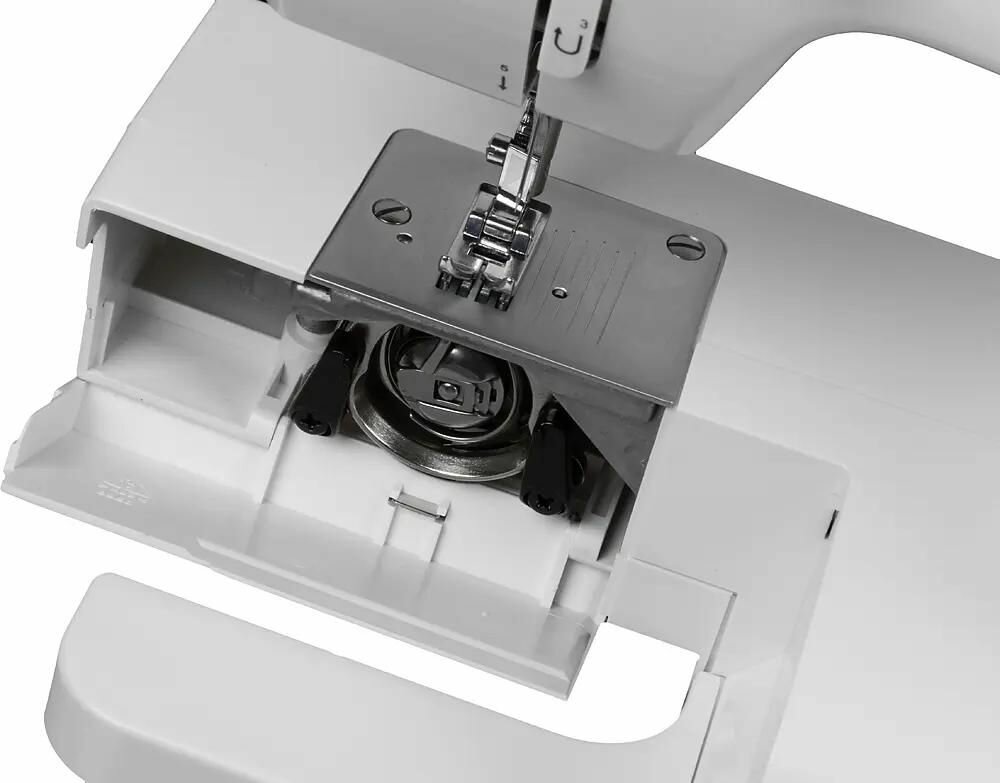 | Плюсы: | За такую цену отличная машинка для начинающего! Количество операций для новичка вполне достаточно. Осталось докупить обметочную лапку ( в комплекте нет). Заправить достаточно просто , есть подсказки со стрелками пошагово, на самой машинке. |