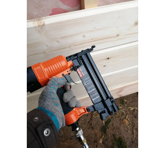 | Минусы: | Заявлен как 3в1. Реально 2.5в1 и то без напильника шпильки 16ga не лезут. Шпильки 50мм только 18ga. 16-е шпильки только до 38мм. Да и те не проходят в отверстие направляющей. |