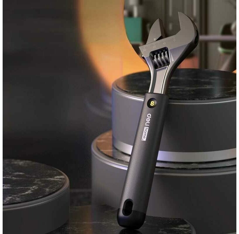 Разводной ключ "Home Series Black" Deli HT1508 200мм (Эксклюзивный дизайн, рукоять из софттач пластика, лазерная гравировка шкалы,подарочная упаковка)
