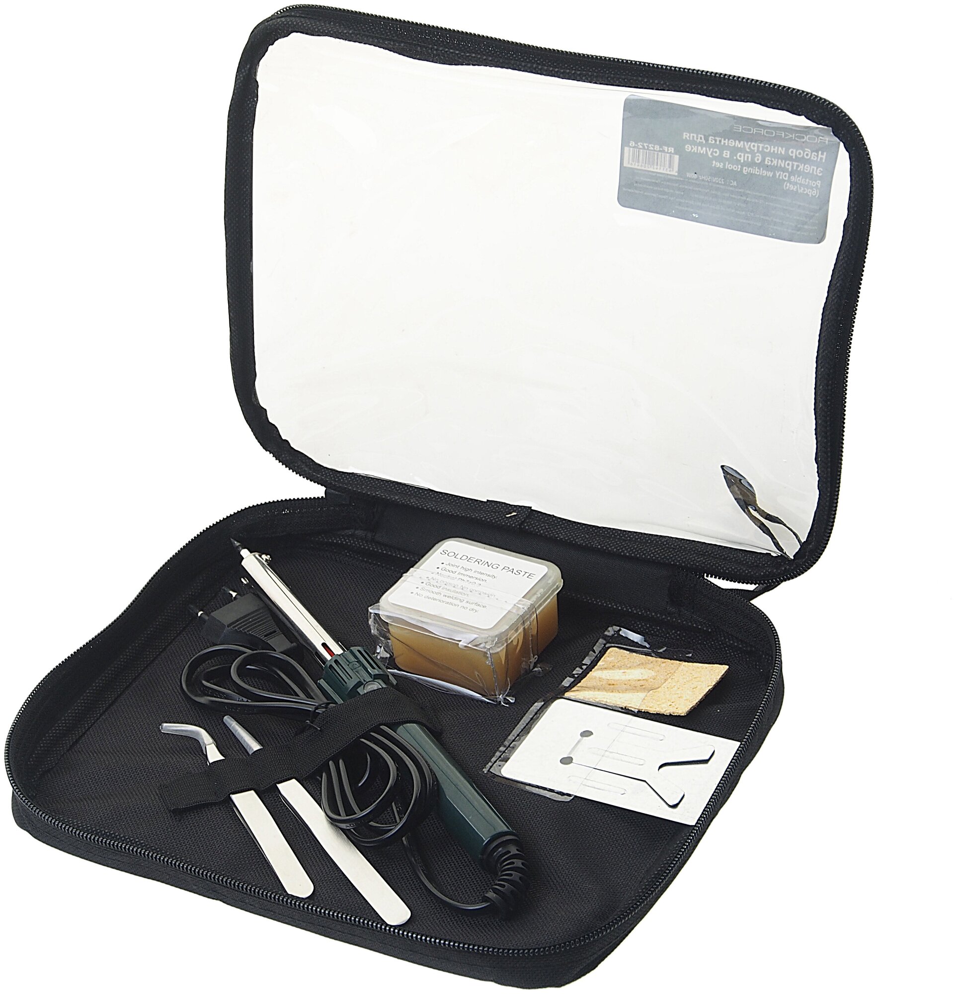 Паяльник ROCKFORCE RF-8272-6 электрический с набором инструментов и аксессуаров 6 предметов (220V, 50Hz, 60W, пинцеты-2шт, расходники) в сумке