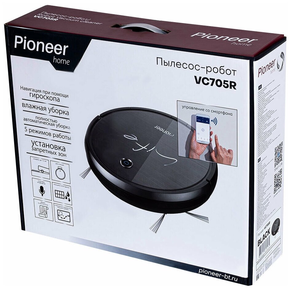 Робот-пылесос Pioneer VC705R, black 2 в 1, сухая и влажная уборка, 5 режимов, гироскоп, голосовой помощник, смартфон-управление Smart life