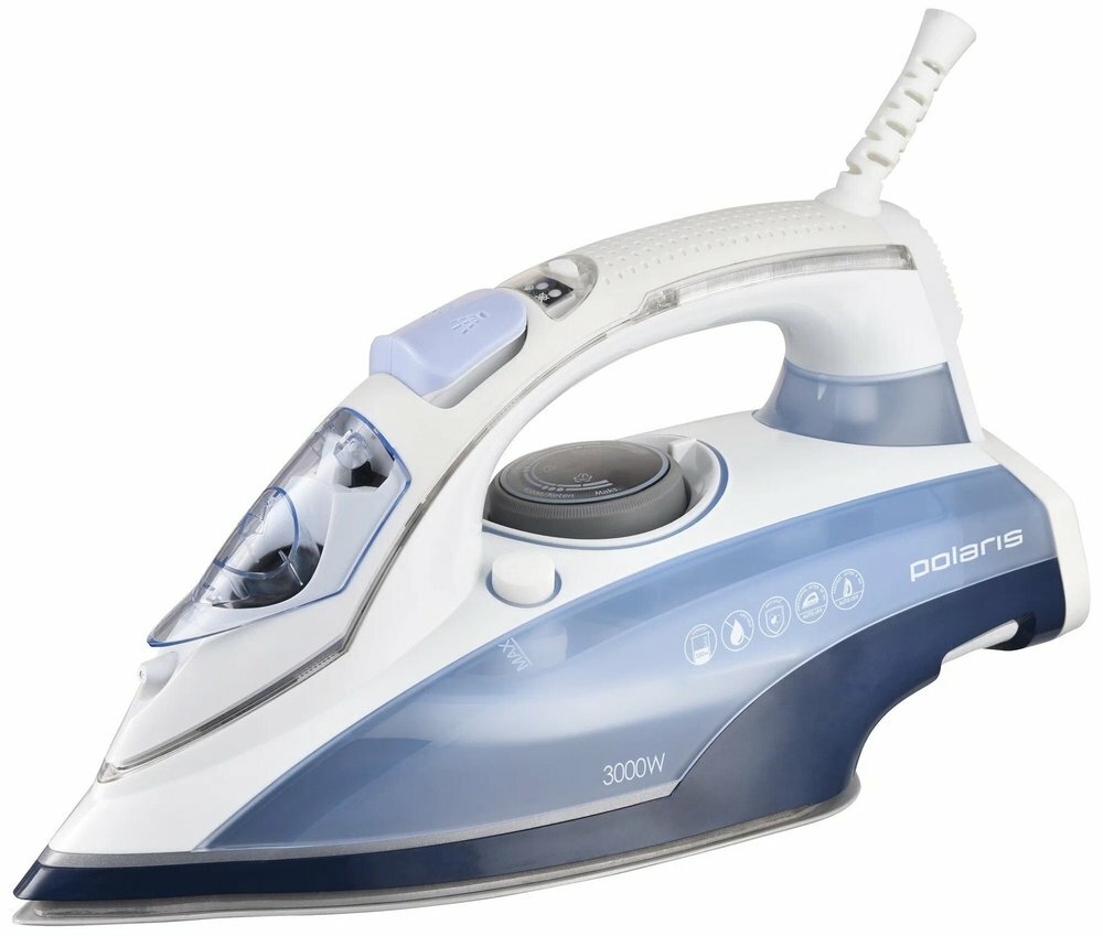 Паровой утюг Polaris PIR 3074 SG AA 3m, встроенный парогенератор, мощность 3000 вт, белый/голубой