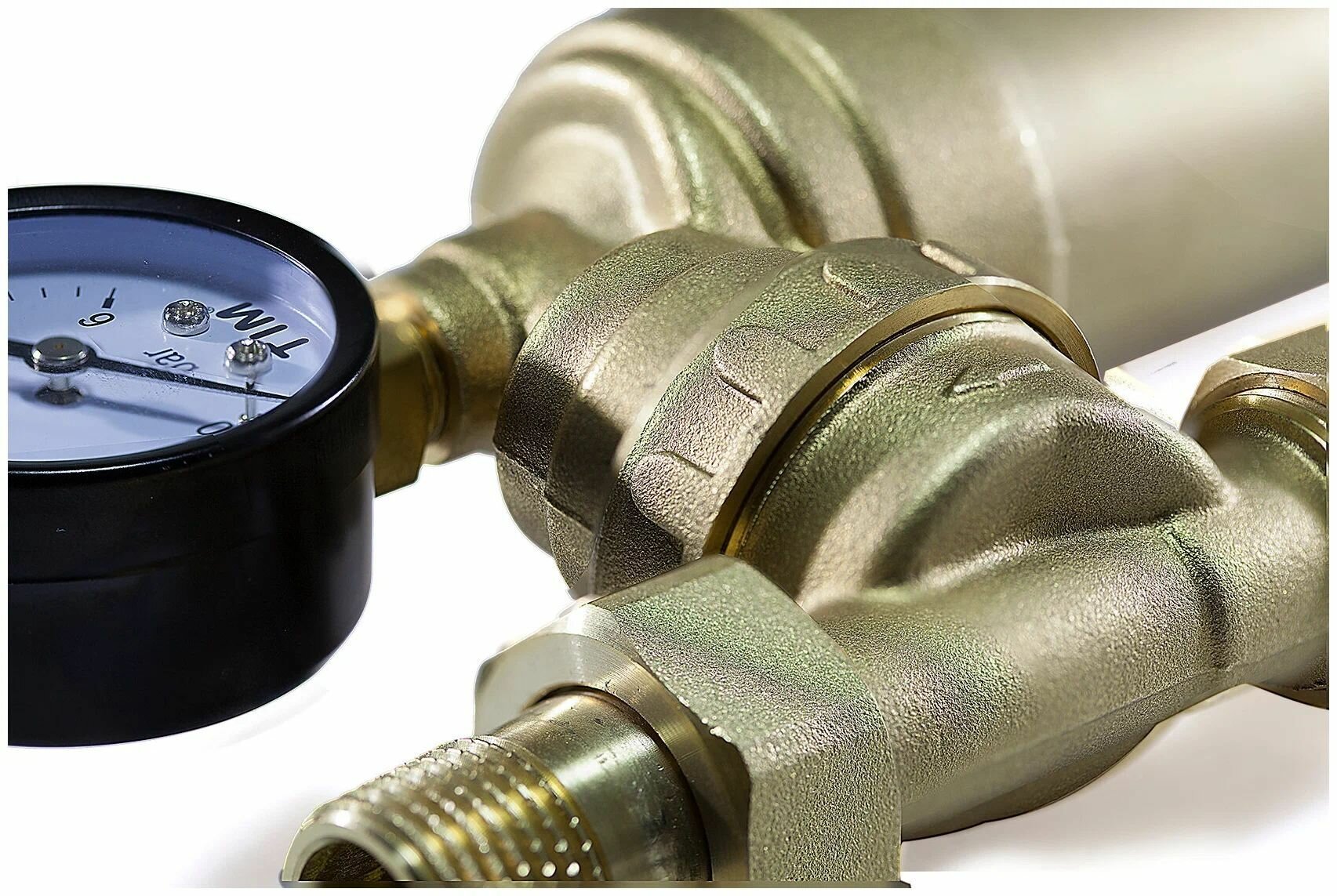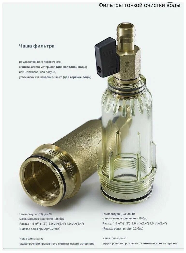 Фильтр механической очистки свободного вращения Tim JH-1002W3 TIM 1/2"c манометром, , стеклянный корпус