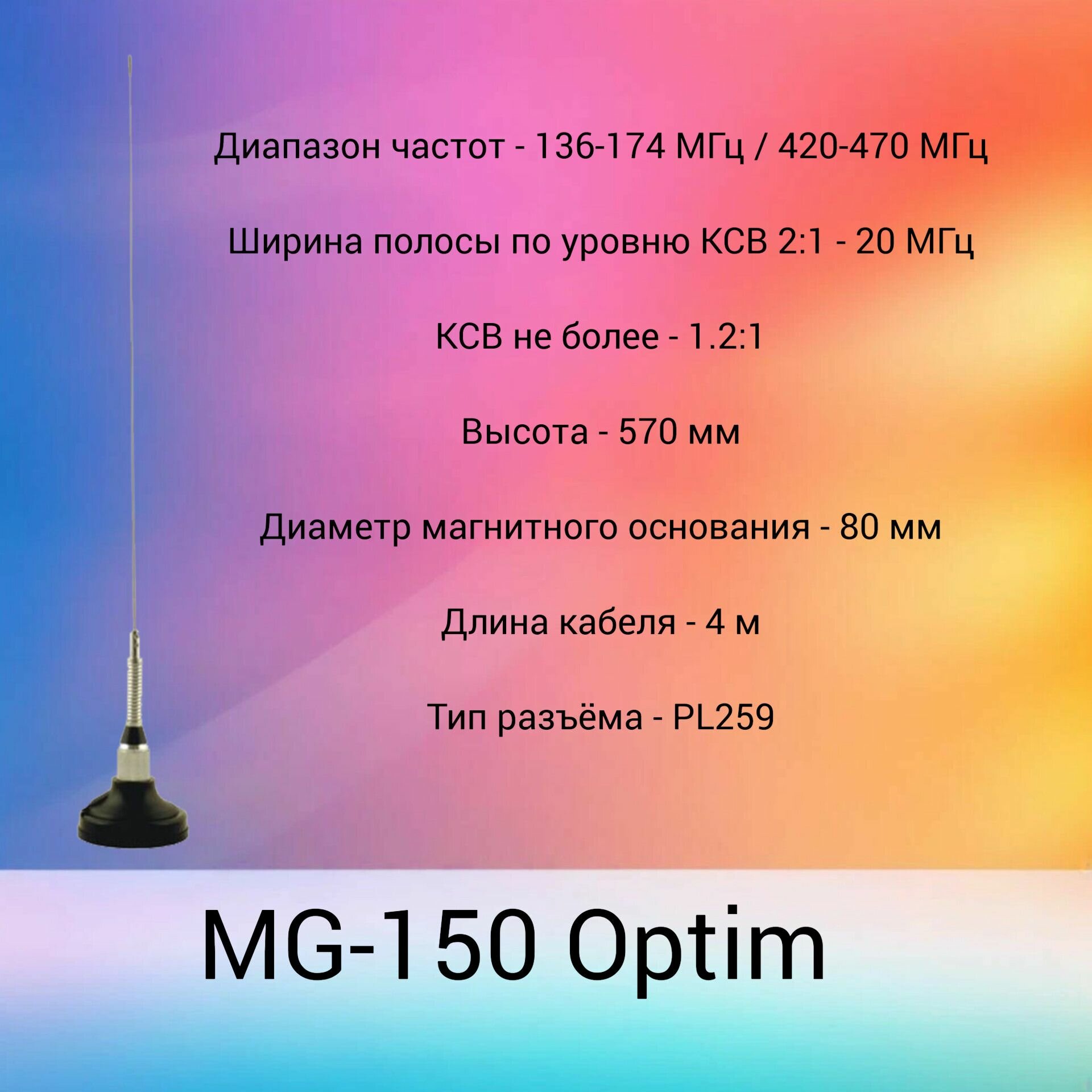Двухдиапазонная антенна на магнитном основании Optim MG-150 (136-174/420-470 МГц) интересное:
