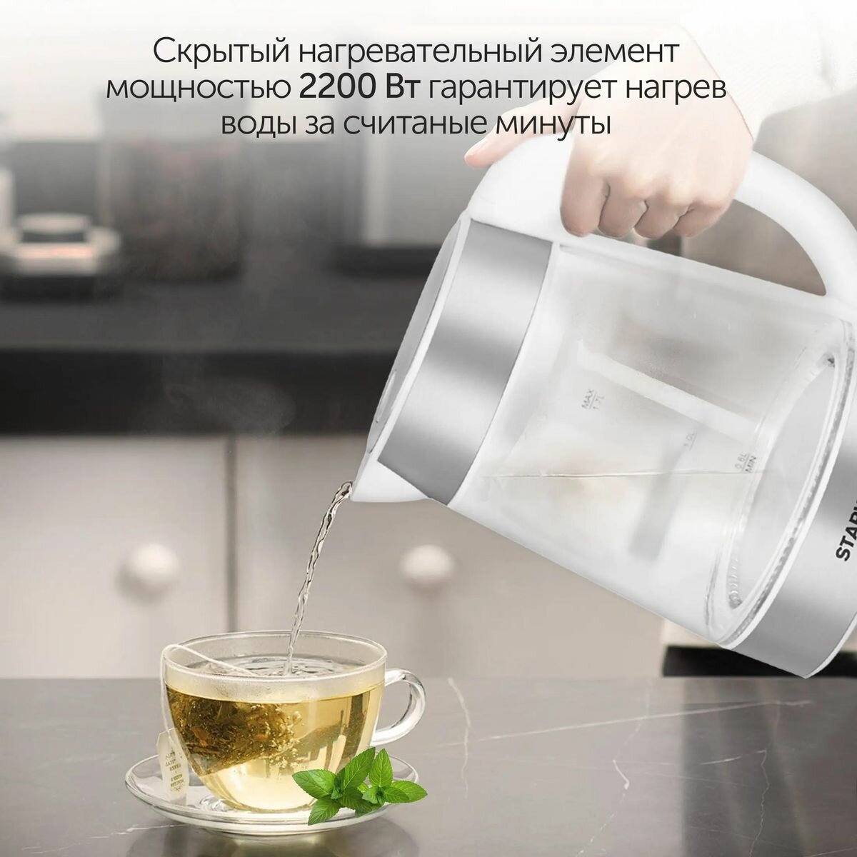 Чайник электрический STARWIND SKG2011, 2200Вт, белый и серебристый интересное: