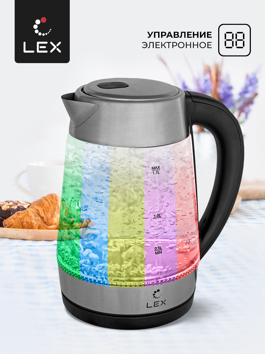 Чайник электрический Lex LX30012-1, стекло, 1.7 л, серебристый