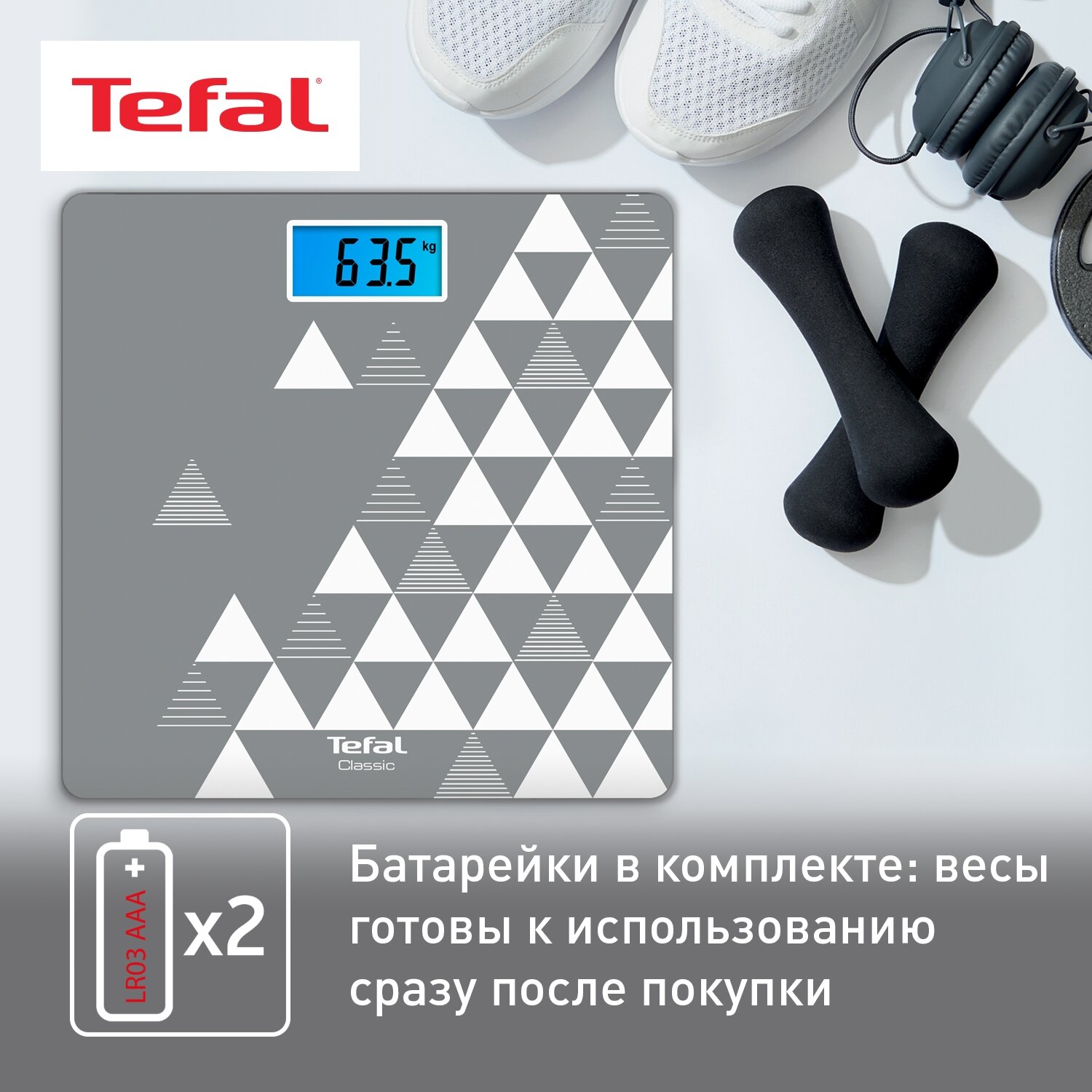Купить Весы напольные Tefal PP1534V0, электронные, до 160 кг, серые