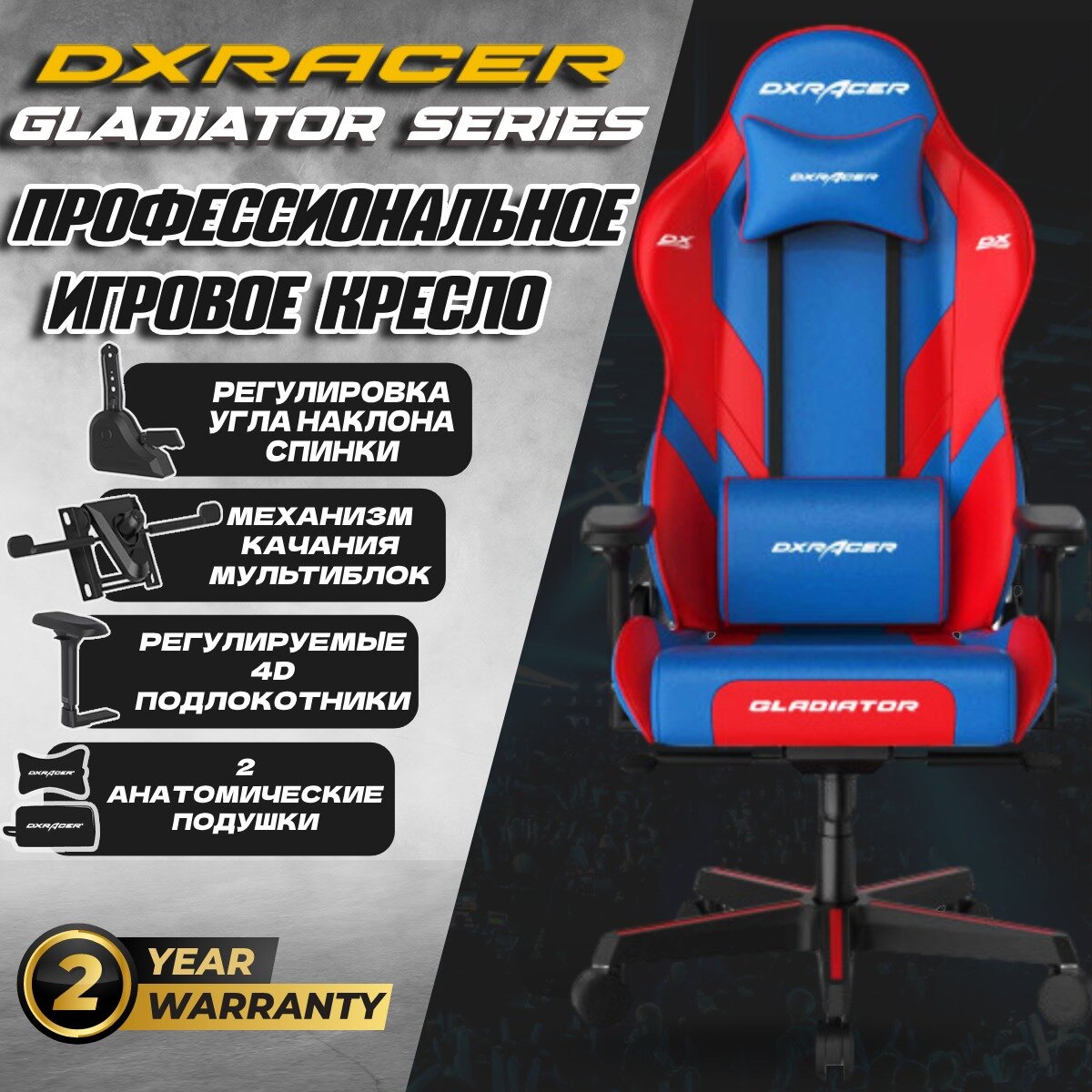 Кресло геймерское DXRACER G8200 сине-красное (OH/G8200/BR, кожа-PU, 4D, мультиблок)