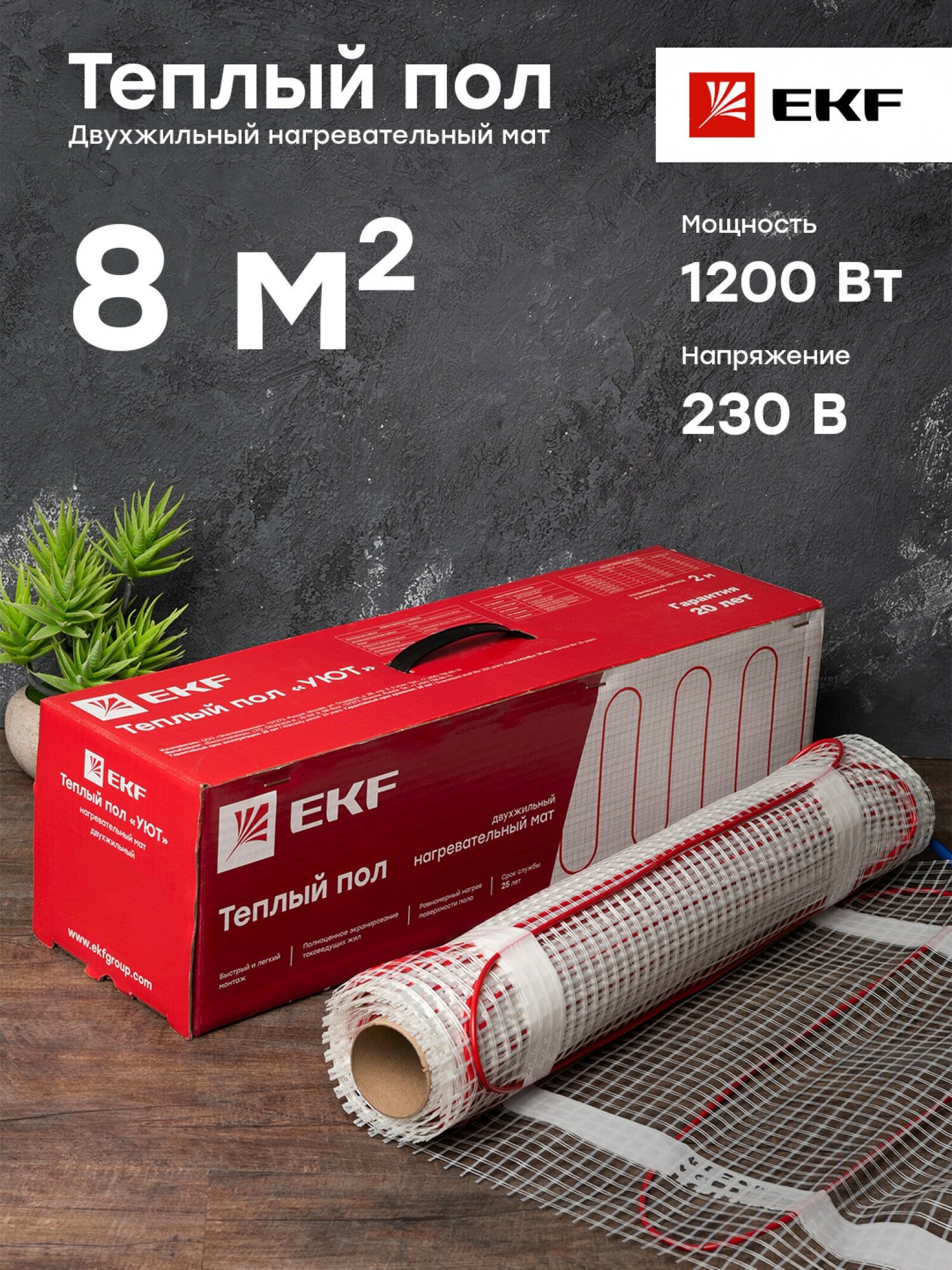 Теплый пол (мат нагревательный) Уют 8 кв.м. 1200 Вт EKF интересное: