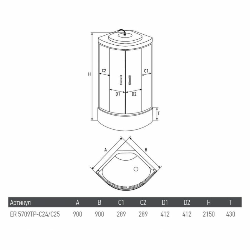 Купить Душевая кабина Erlit ER5709TP-C24-RUS (900x900x2150)