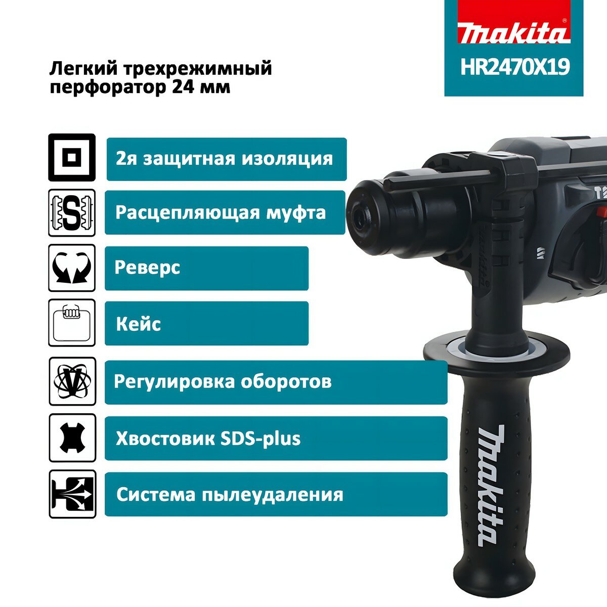 Перфоратор Makita HR2470X19 780Вт, SDS-Plus, двойной изоляцией