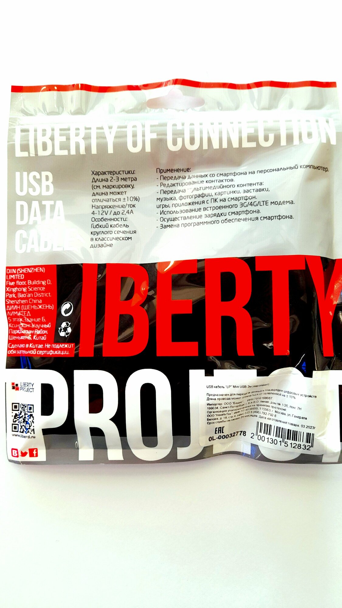 USB кабель LP Mini USB 2 метра, европакет интересное: