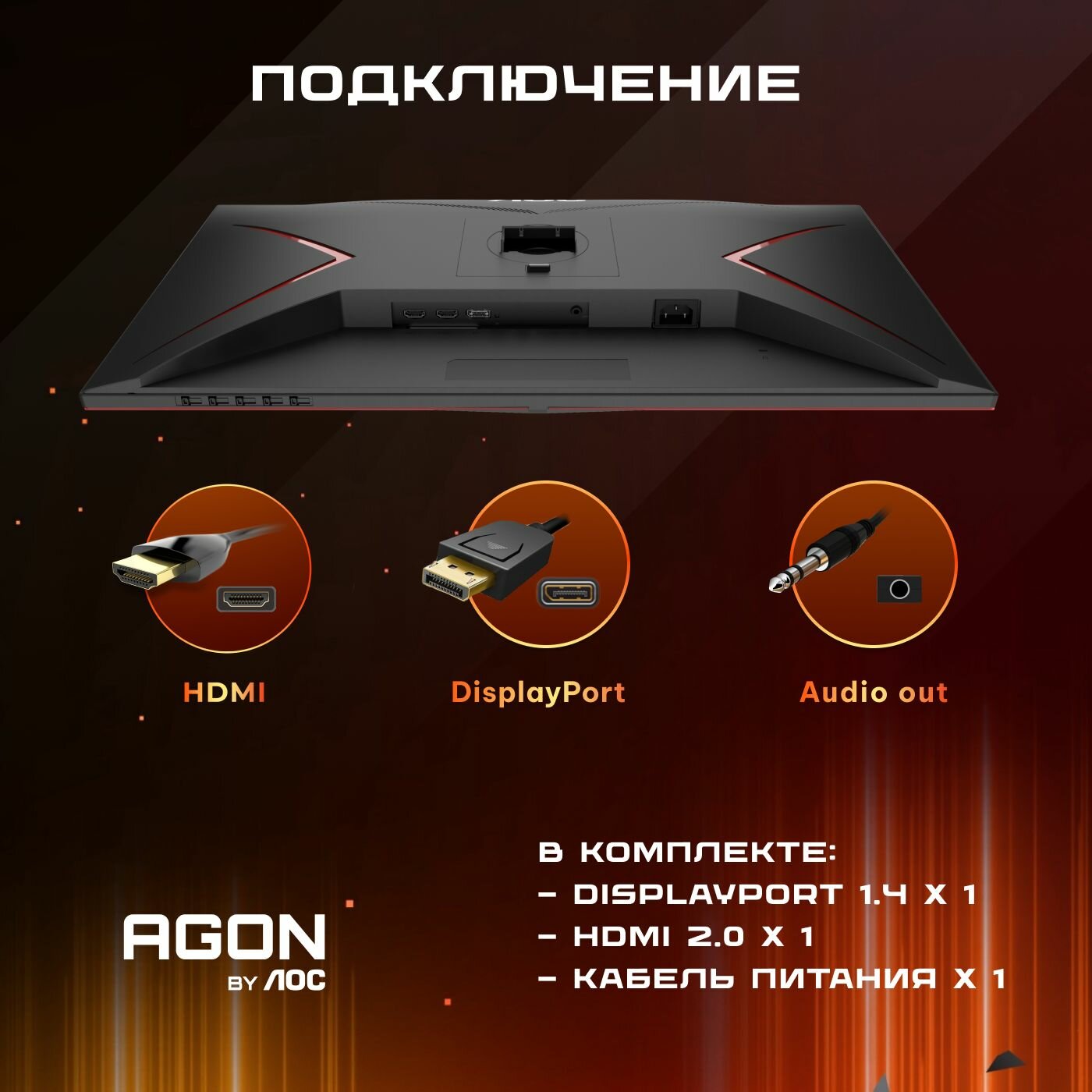| Подробная комплектация | кабель HDMI 1.8 м; кабель DisplayPort 1.8 м; кабель питания |