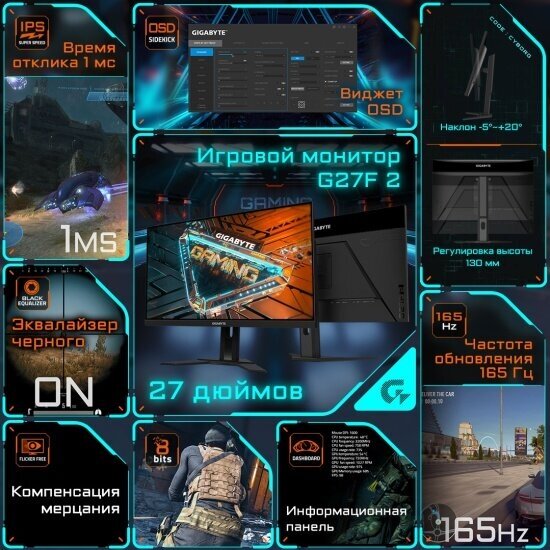 Сохранить27"Монитор Gigabyte G27F2 IPS 1920x1080 165Hz FreeSync Premium 400cd 16:9 интересное: