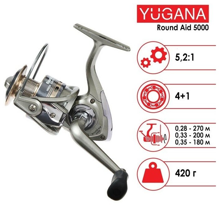Катушка YUGANA Round aid 1000 4+1 подшипник, 5.1:1 5385814