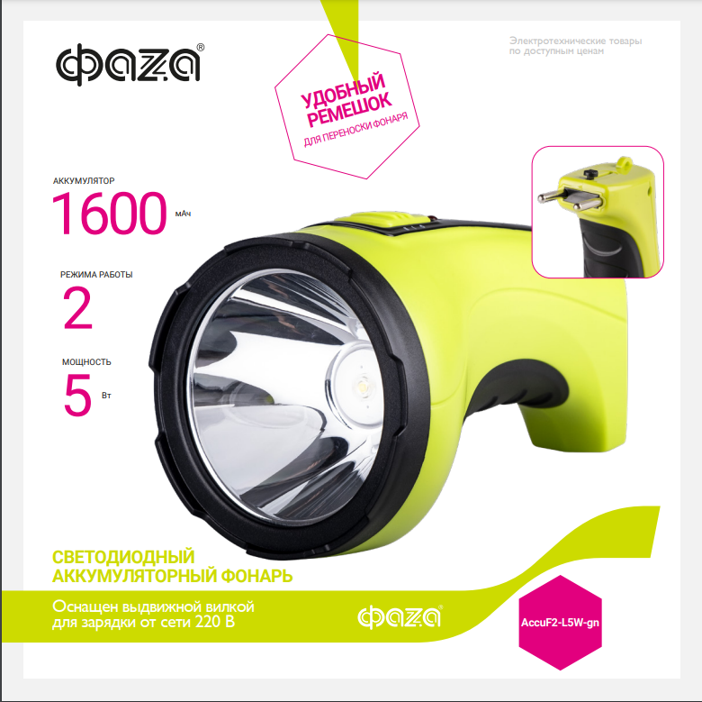 СохранитьАккумуляторный фонарь ФАZА AccuF2-L5W-gn интересное:
