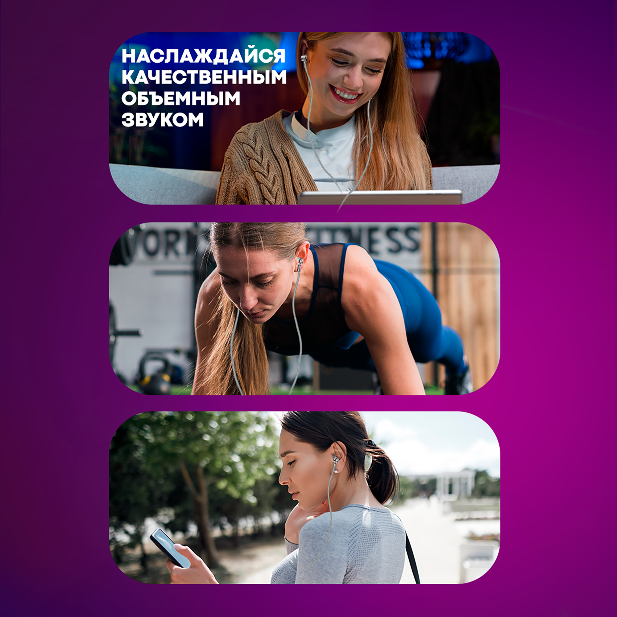 | Плюсы: | Тонкий и прочный провод, есть микрофон, звучит стабильно |