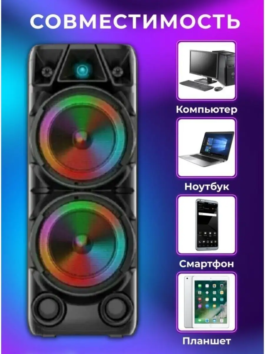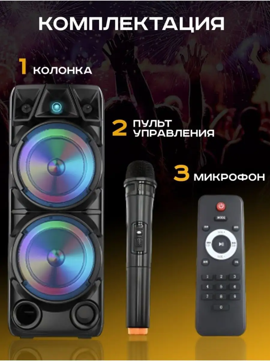 | Дополнительная информация | Комплектация: Музыкальная колонка большая BT Speaker ZQS-8210; Беспроводной микрофон; Зарядный кабель USB; Aux-кабель (3,5mm) 2 метра; Пульт дистанционного управления; Фирменная коробка; Инструкция по эксплуатации. |