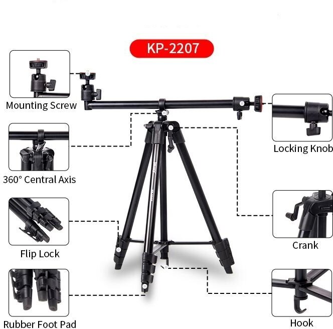 Штатив для телефона, фотоаппарата, камеры напольный Jmary KP-2207 - Черный