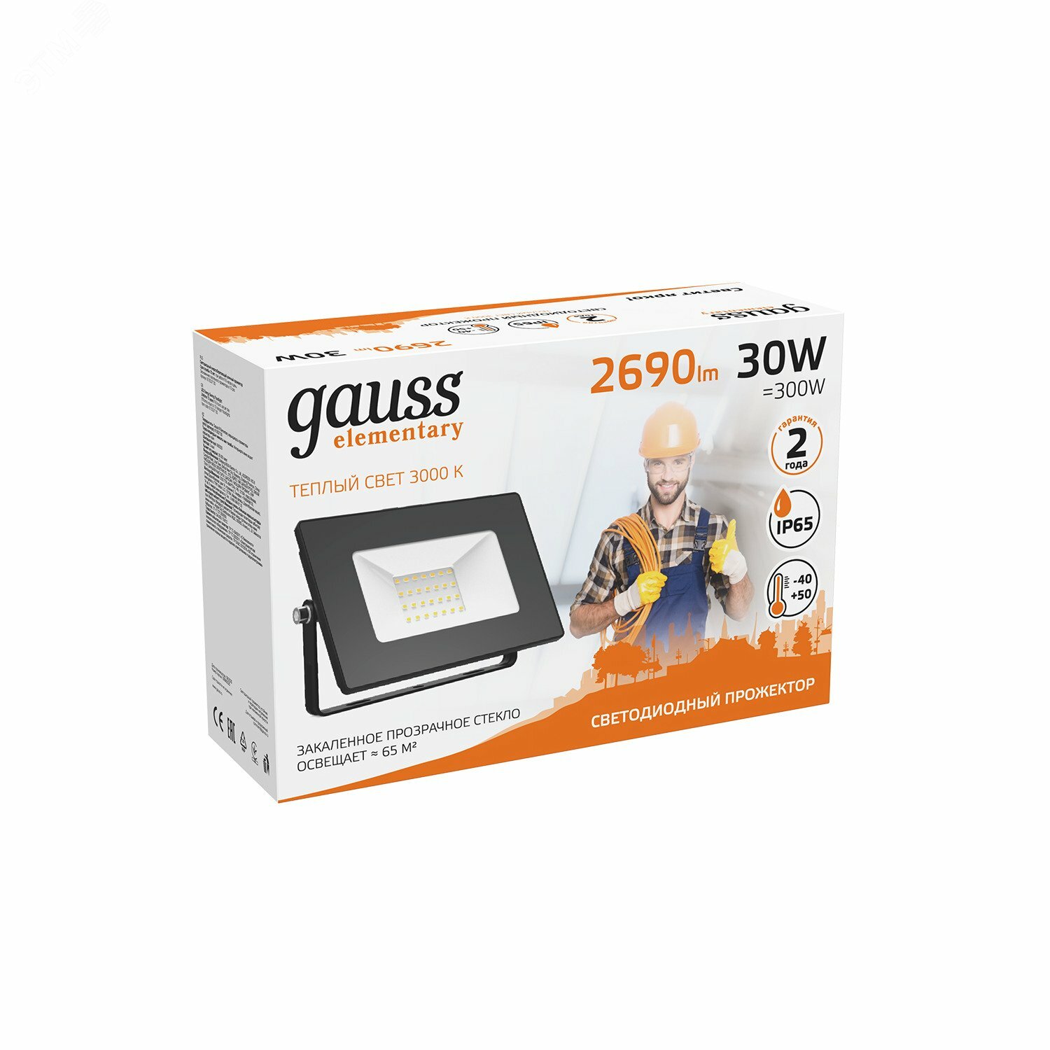 Прожектор светодиодный gauss Elementary 613527130, 30 Вт, свет: теплый белый