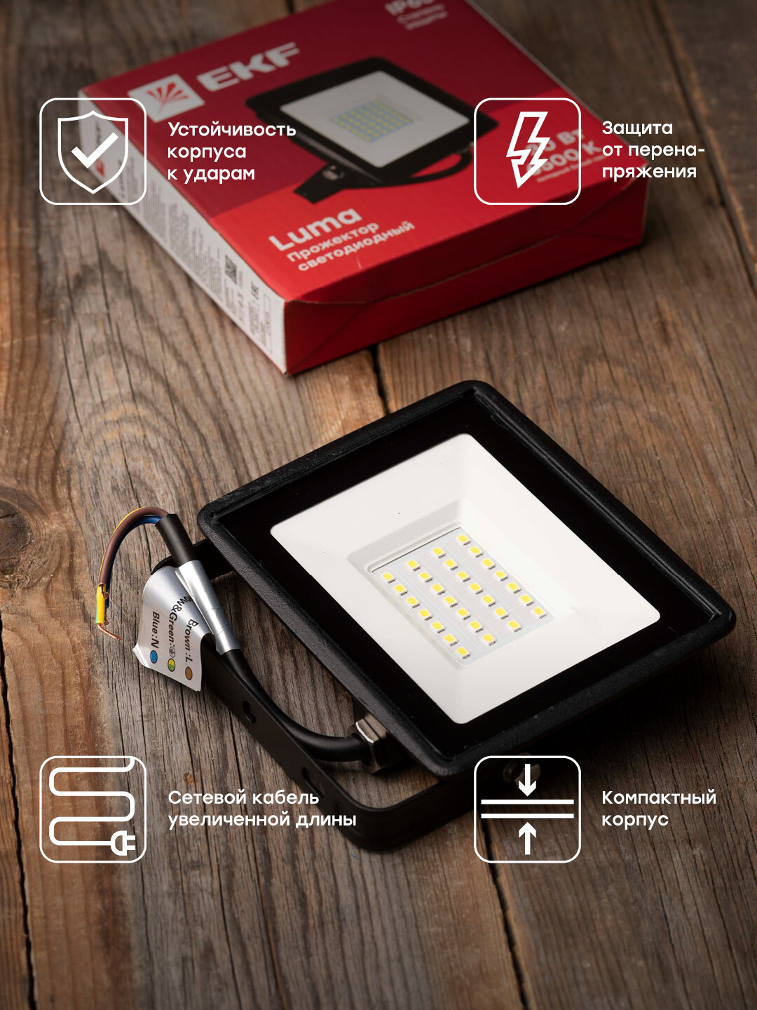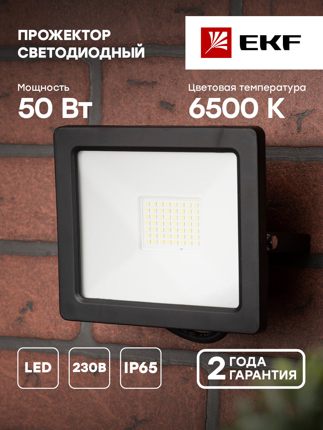 Прожектор светодиодный EKF СДО-3004, 50 Вт, свет: холодный белый
