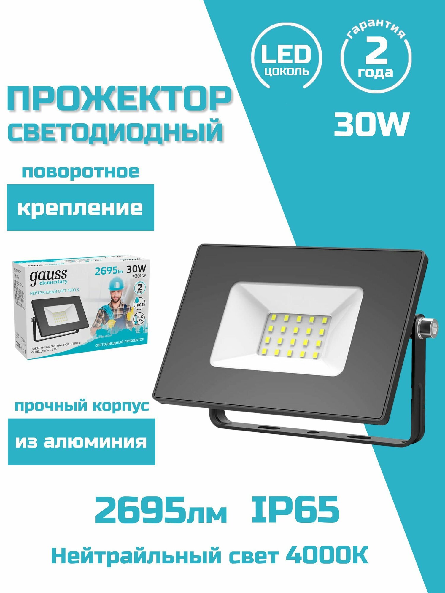 Прожектор светодиодный gauss Elementary 613100230, 30 Вт, свет: дневной белый