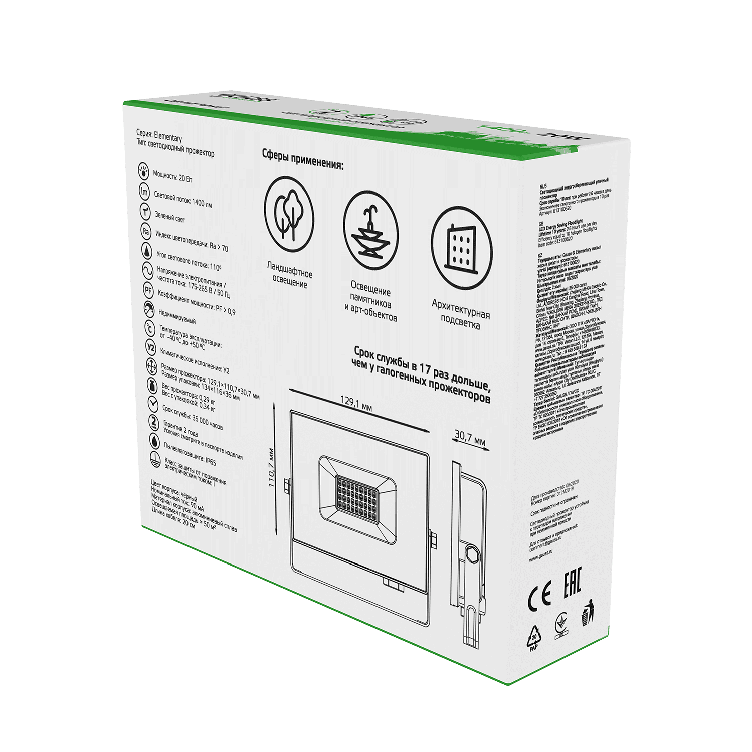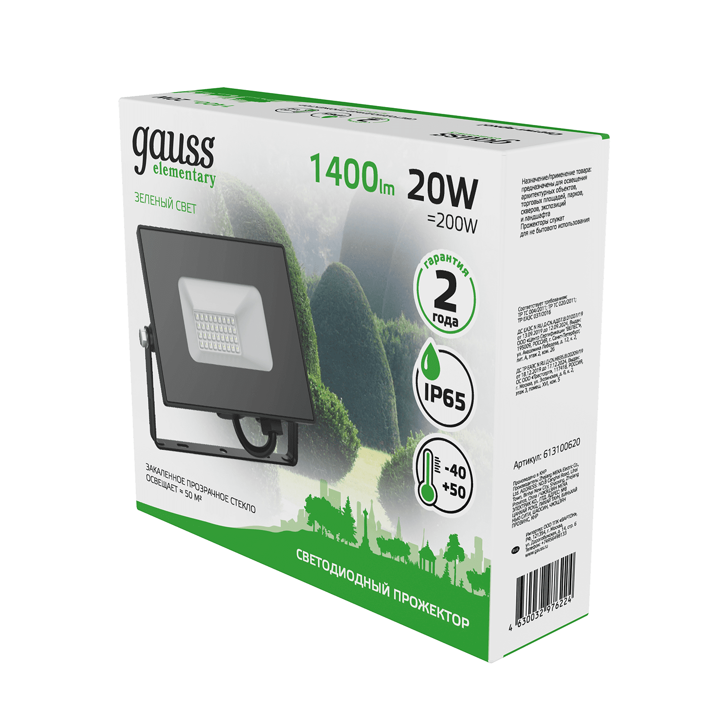 Прожектор Gauss LED 613100620 20W IP65 1400lm зеленого свечения черн.корпус интересное: