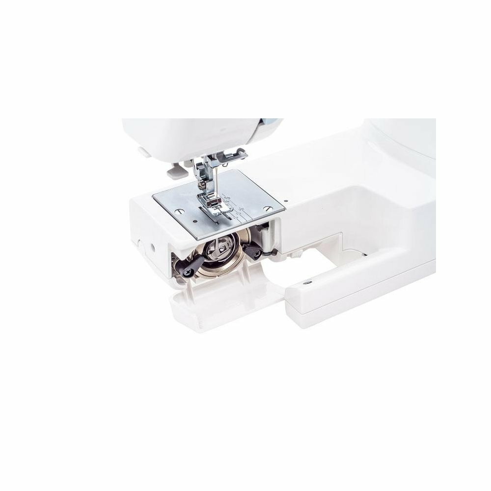 | Плюсы: | Набор строчек <br>Металлическая станина <br>Рукавная платформа <br>Нитевдеватель <br>Выметывание петли для пуговицы <br>Всеядность <br>Стоимость <br>Жесткий чехол |