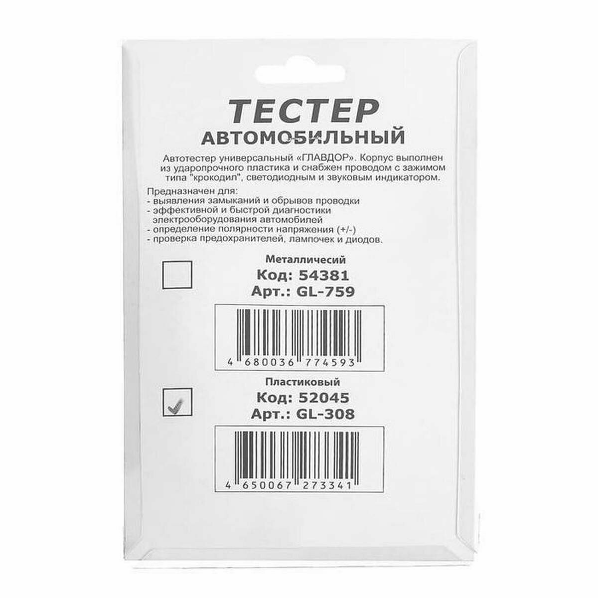 Автомобильный тестер с автоматическим определением полярности Главдор GL-308