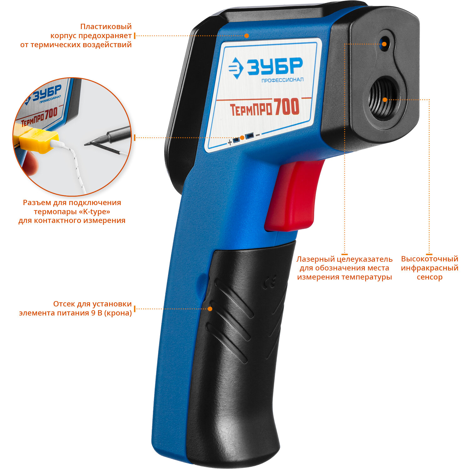 Пирометр инфракрасный, -50°С +650°С, ТермПро-700, ЗУБР Профессионал
