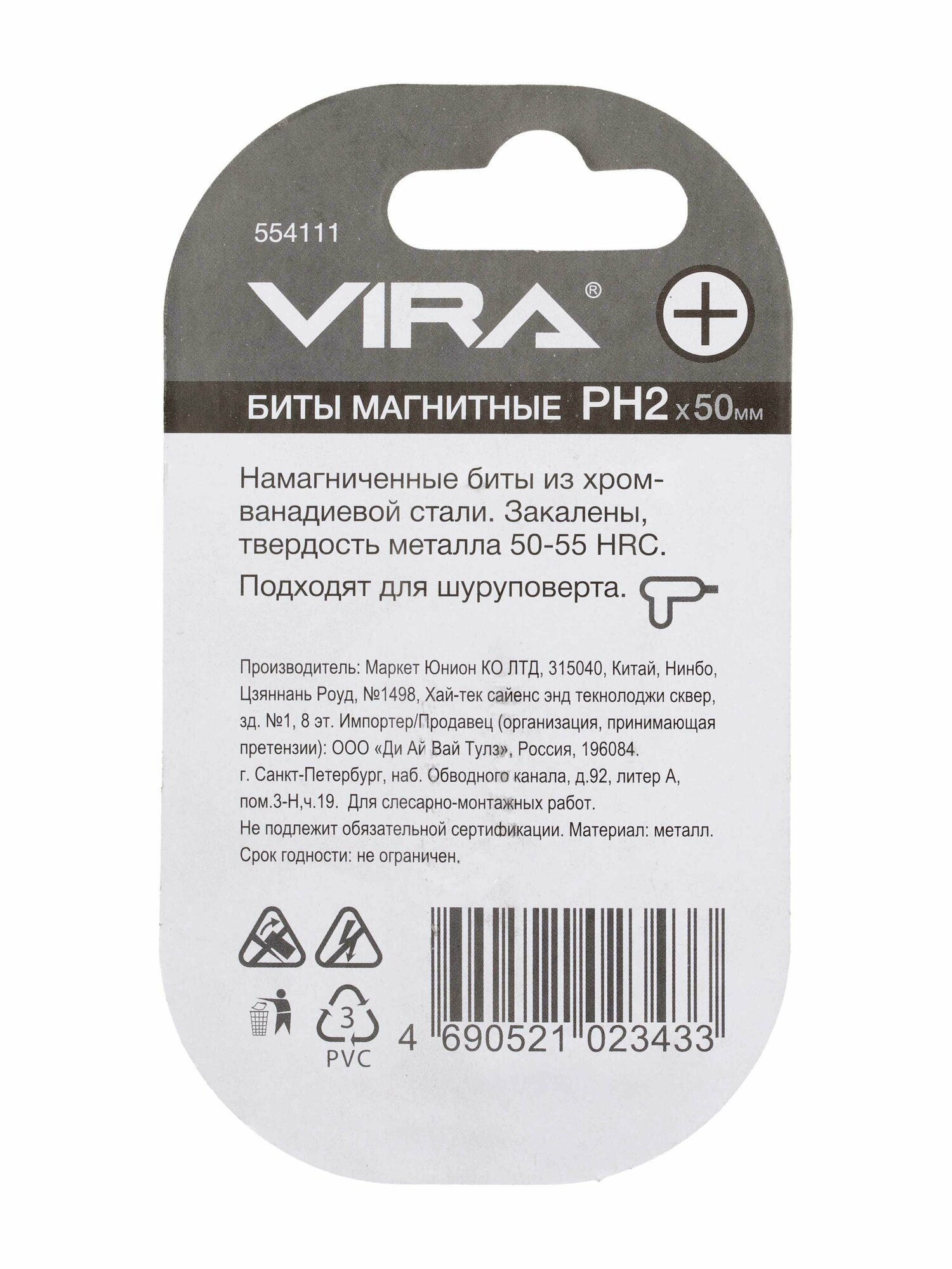 Бита крестовая магнитная Vira PH2x50 мм, 2 шт. интересное: