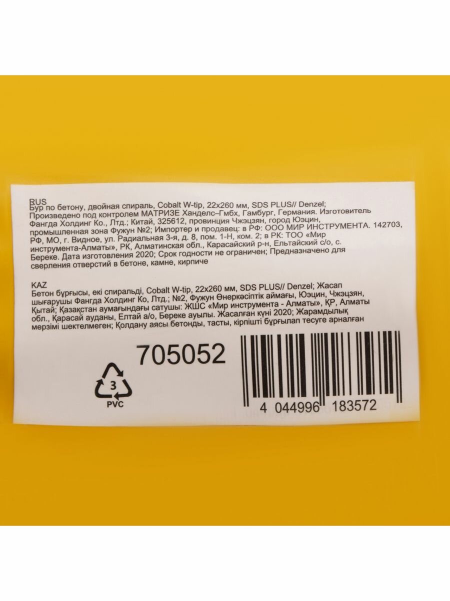 Бур по бетону Denzel двойная спираль, Cobalt W-tip, 22x310 мм, SDS PLUS 705053