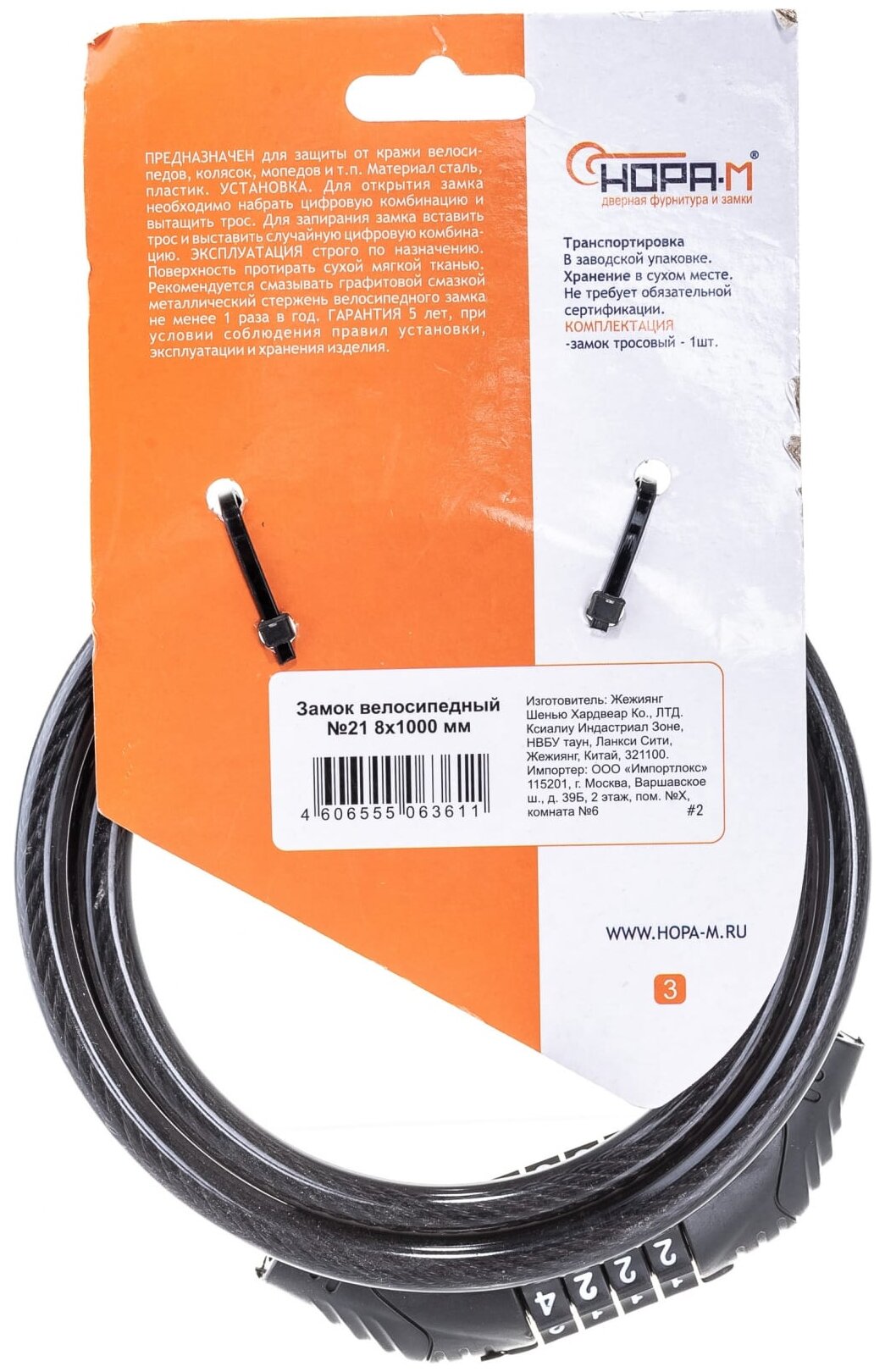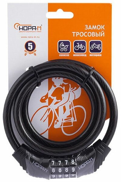 Замок велосипедный кодовый нора-м №21 размер ф8х1000мм черный (13906)