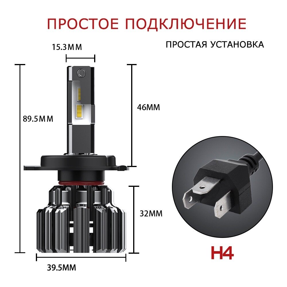 Светодиодная лампа Novsight F03 H4 цоколь P43t 70Вт 2шт 6000K 15000Лм белый свет LED автомобильная интересное: