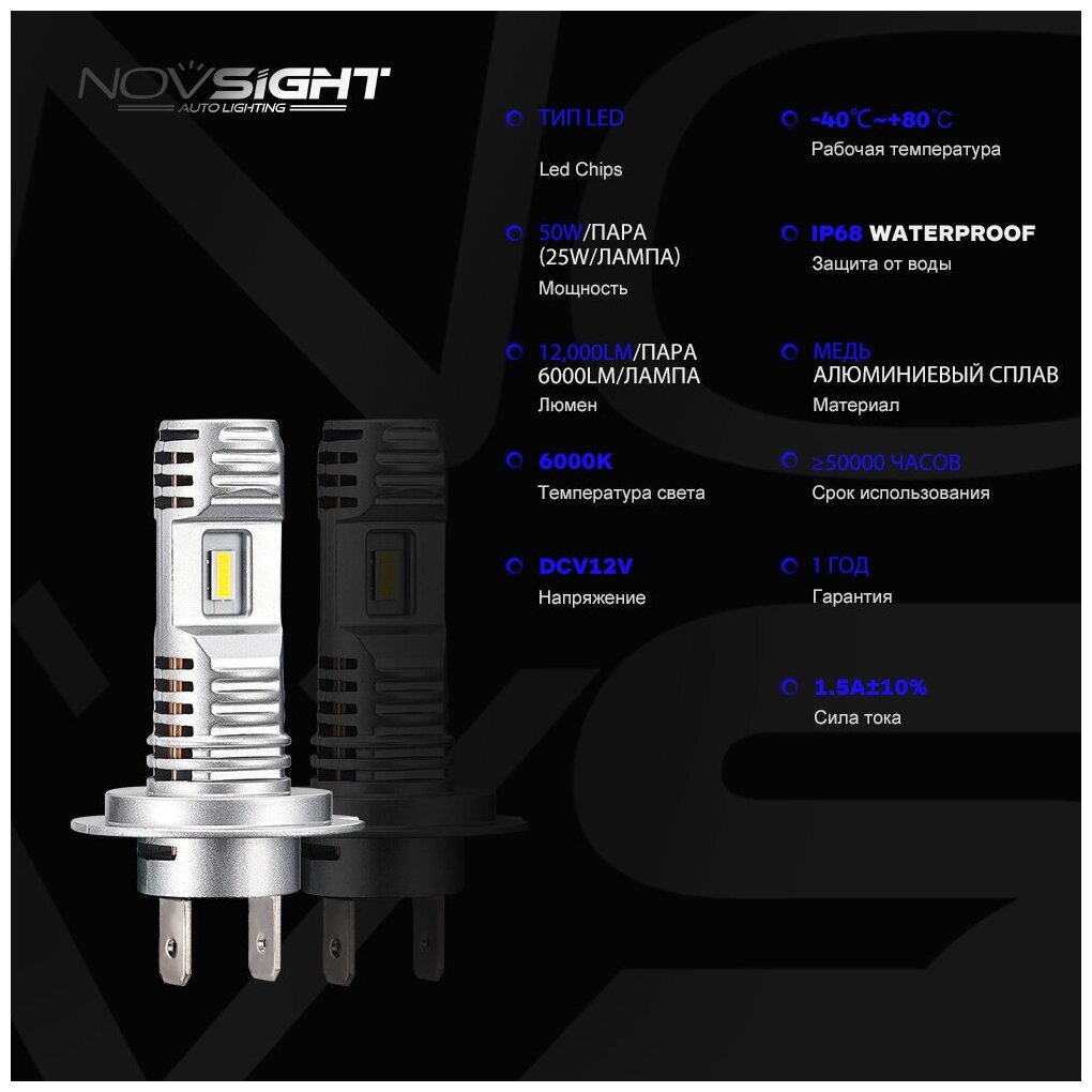 Светодиодная лампа Novsight N36 H11 цоколь PGJ19-2 50Вт 2шт 6000К 12000Лм белый свет LED автомобильная интересное: