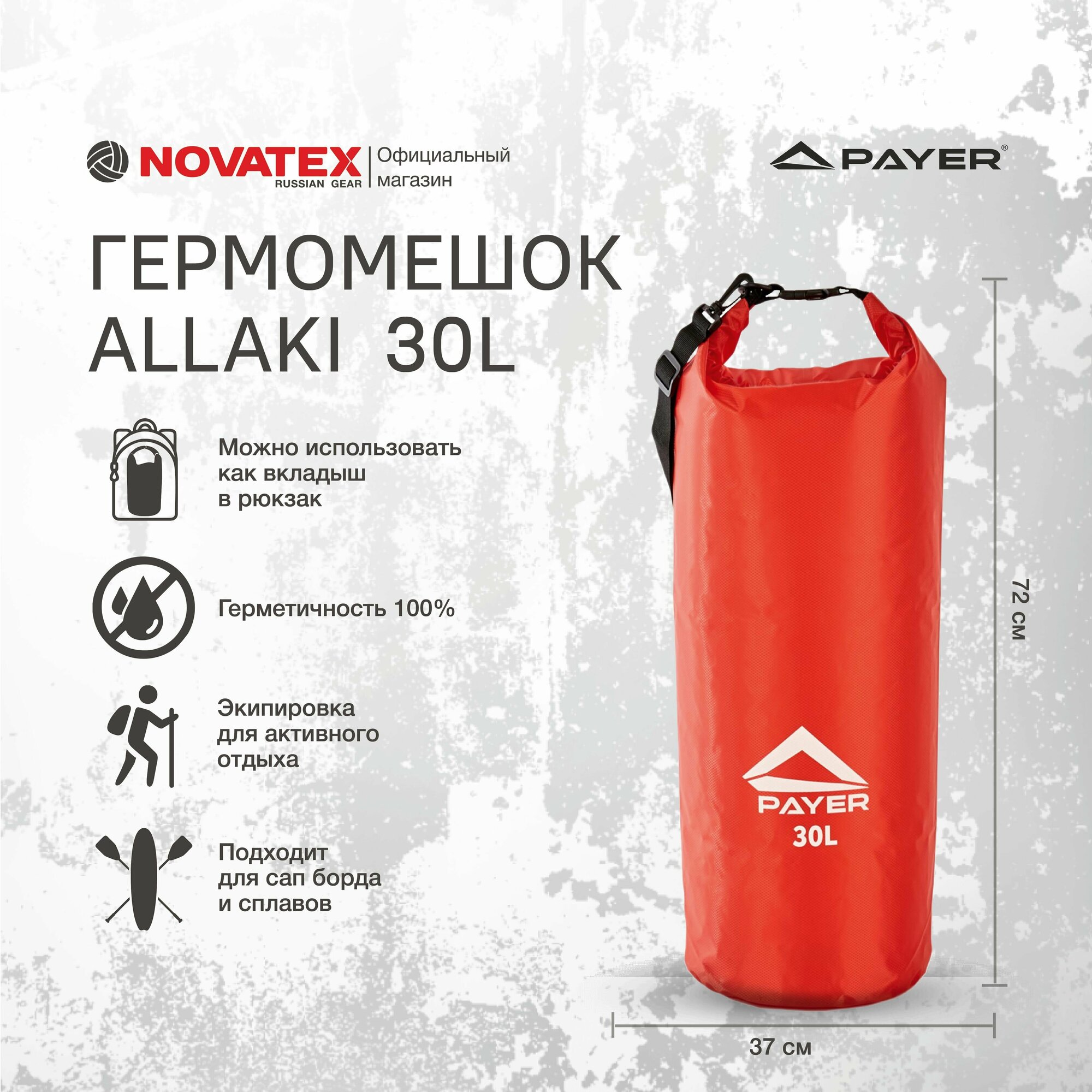 Гермомешок / гермочехол для рыбалки, катания на сапах NOVATEX PAYER Allaki 30л