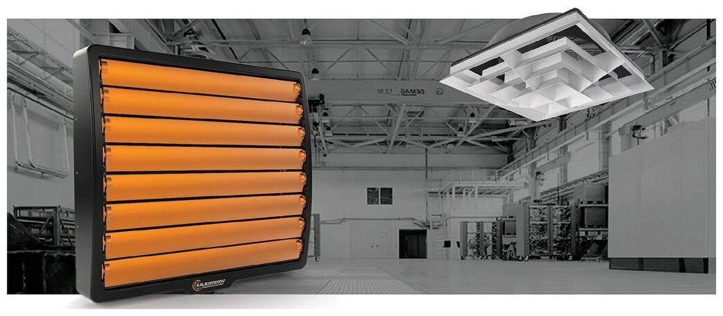 | Плюсы: | Отлично справляются с обогревом хлебобулочного цеха, крепятся на потолок, благодаря мощности поддерживают необходимую температуру в большом помещении, просты в эксплуатации, экономный расход ресурсом. |