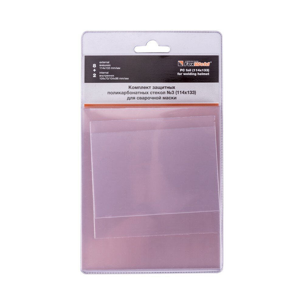 Foxweld Комплект поликарбонатных стекол №3 8 внешних 114x133мм, 1 внутреннее 104x70мм, 1 внутреннее 104x96мм, для масок GEFEST 5318