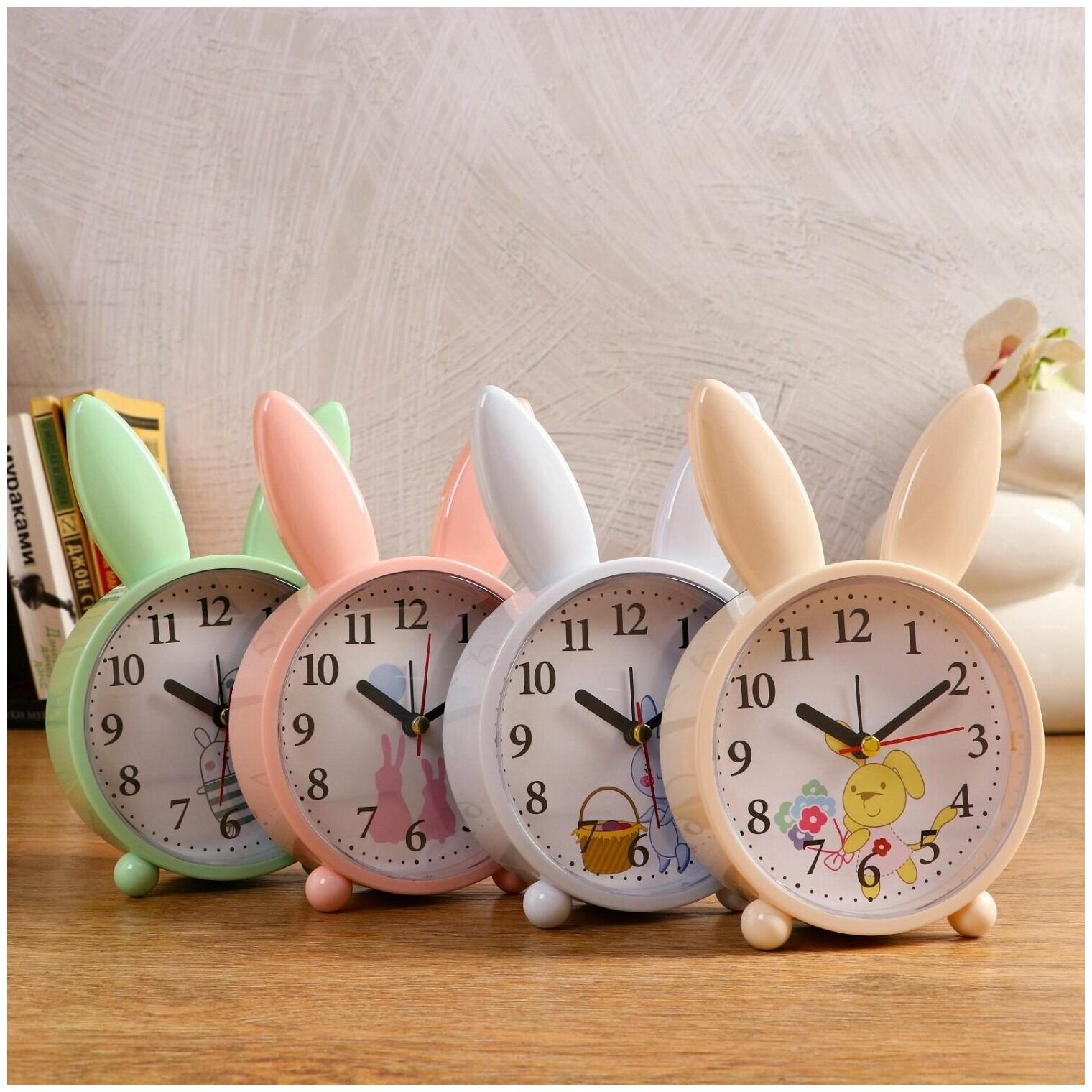 Часы - будильник настольные "Зайчик", плавный ход, циферблат d-10 см, 16.5 х 11 см, АА (комплект из 4 шт)
