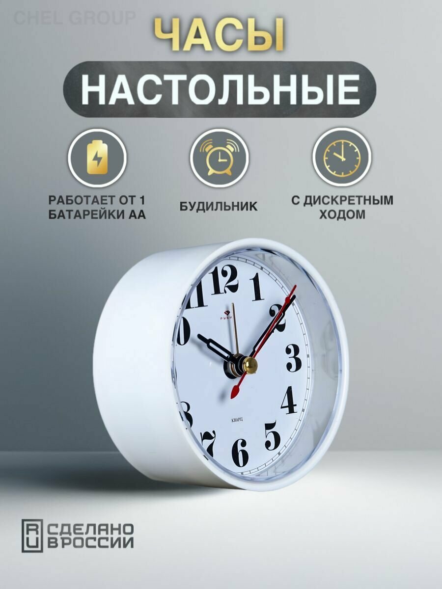 Рубин Будильник "Классика", дискретный ход, 8 х 8 х 3.7 см, белый