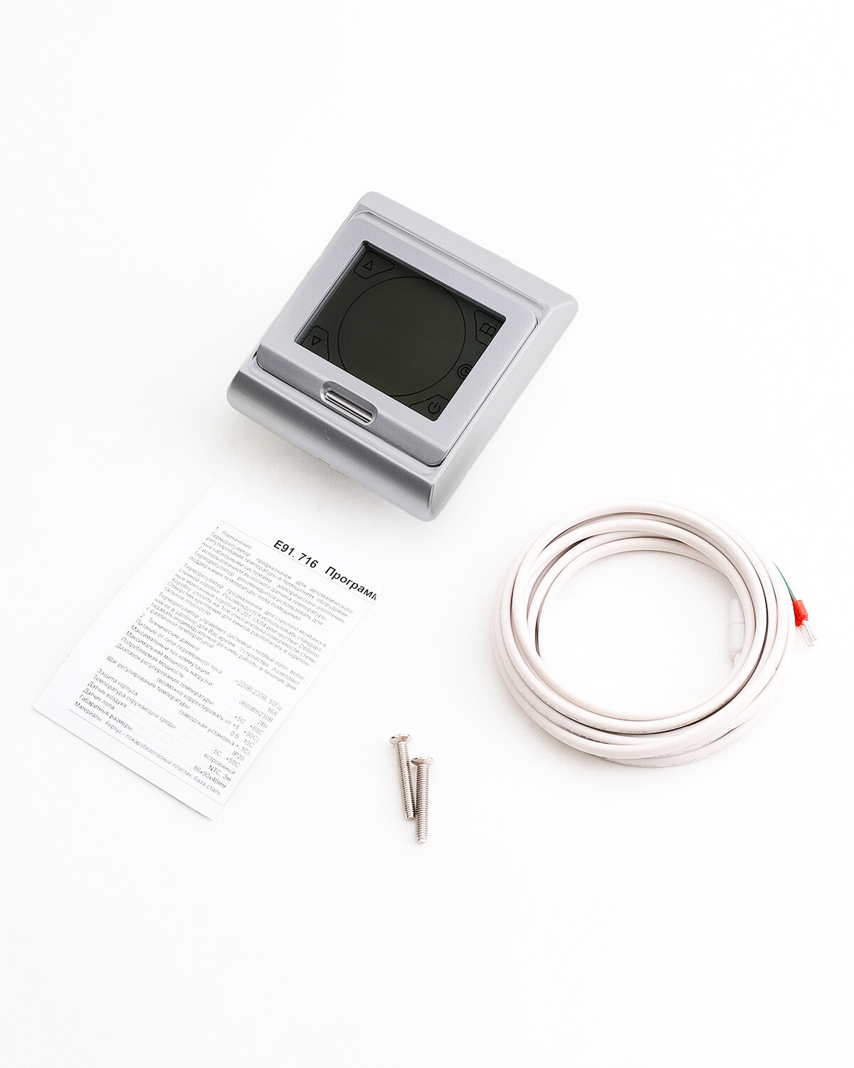 Терморегулятор NUNICHO E 91.716, сенсорный программируемый термостат с термодатчиком 3600 Вт, серебристый