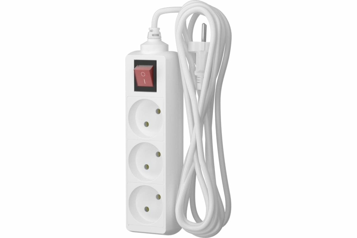 Удлинитель сетевой для розетки, удлинитель для гирлянды фотон 10А 3 метра 3 розетки с выключателем белый, ГОСТ