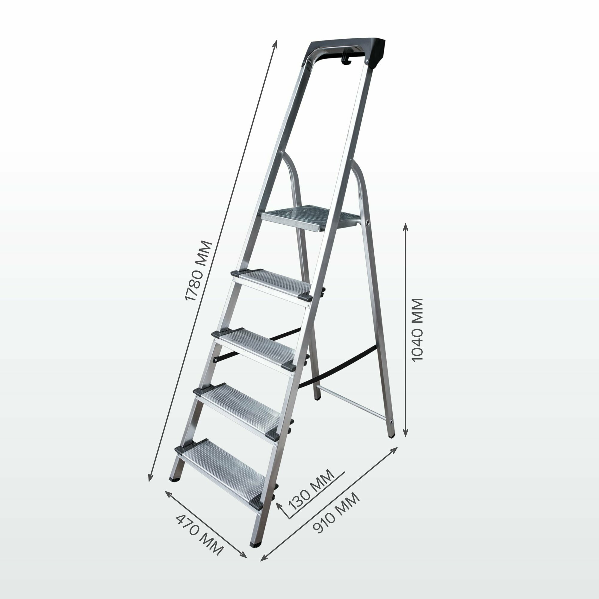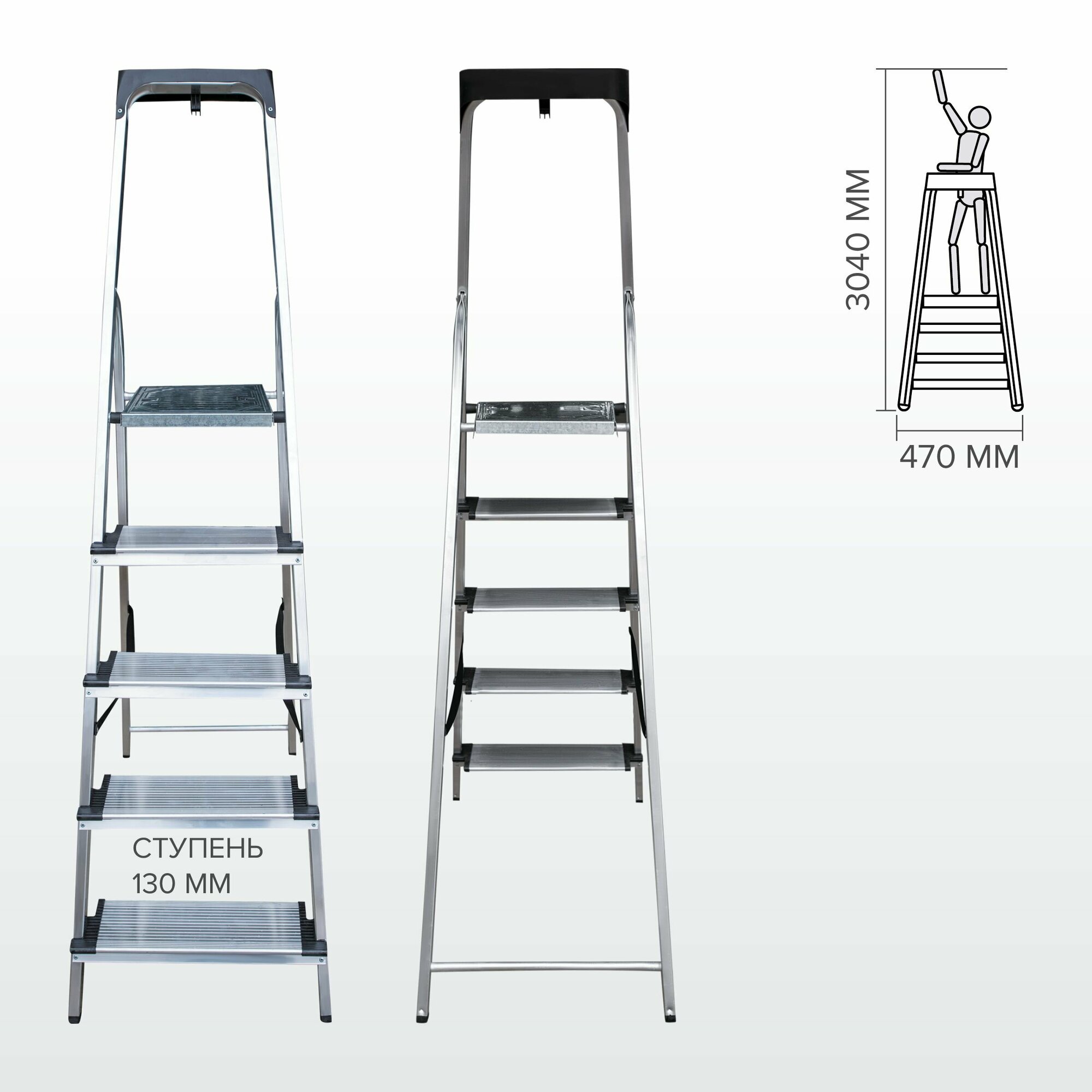 Стремянка алюминиевая с лотком-органайзером, ступень 130 мм, 1х5