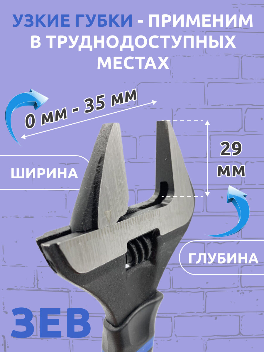 Разводной сантехнический ключ с тонкими губками 6" 35 мм ширина захвата интересное: