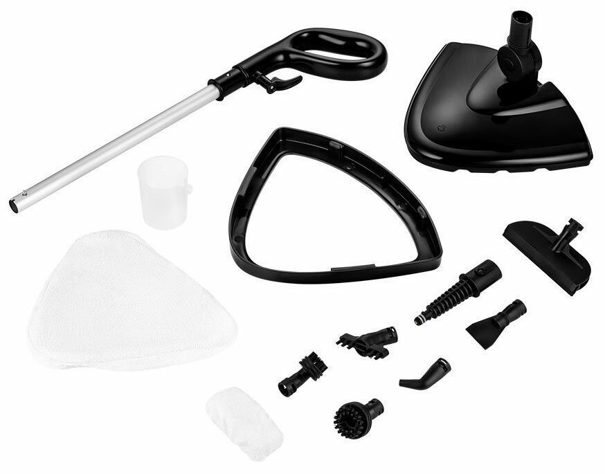 | Дополнительная информация | время работы на высоком уровне: 21 мин; длина шнура 4,8 м; подача пара на низком уровне 10 ± 4 г/мин; подача пара на высоком уровне 28 ± 4 г/мин; комплектация: рукоятка, щетка для пола, тряпка для пола, струйная насадка, угловая насадка, рамка для ковра, скребок, тряпка для отпаривания, плоская нейлоновая щетка, малая круглая нейлоновая щетка, большая круглая нейлоновая щетка, мерный стаканчик |