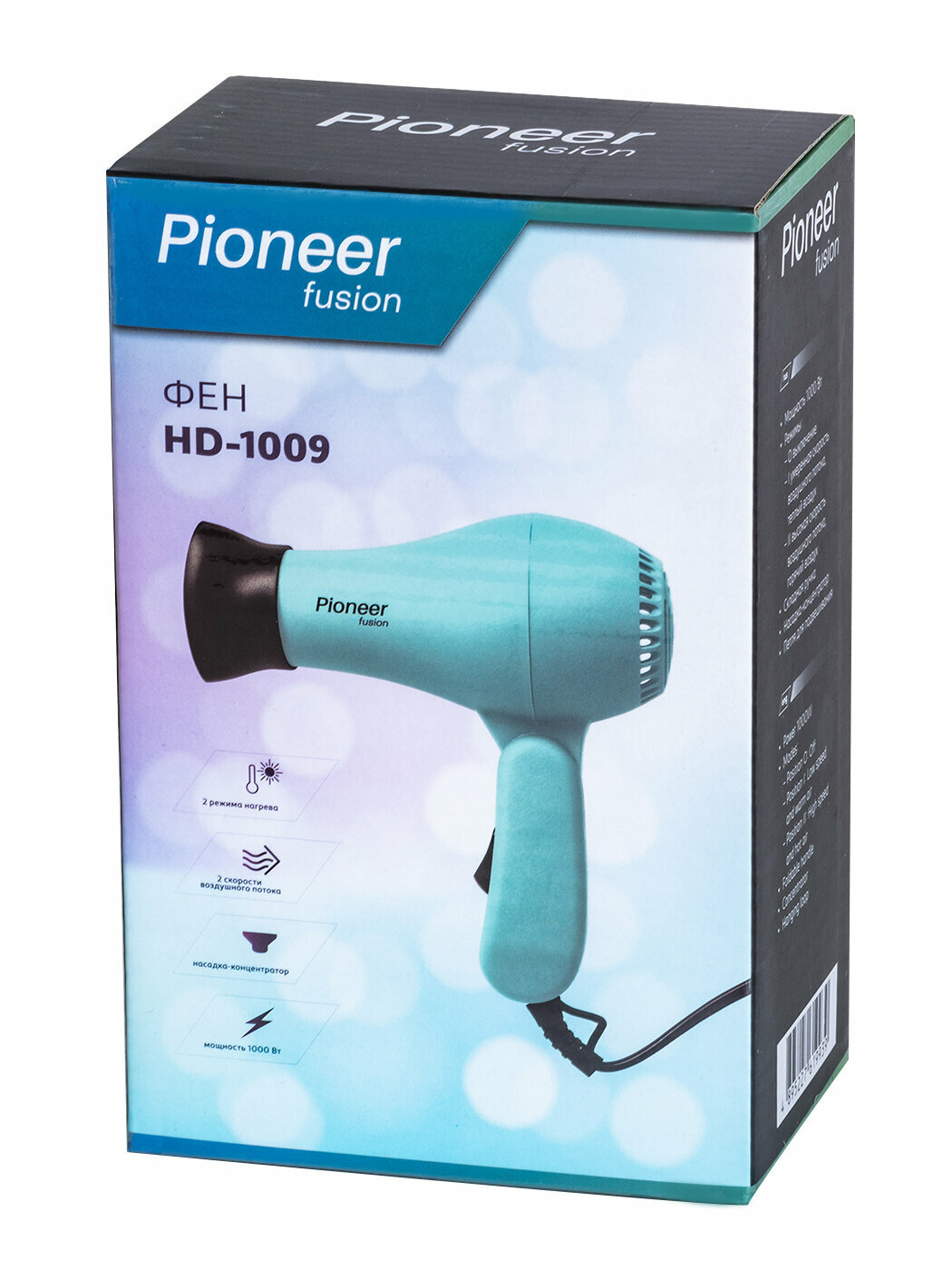 Купить Фен Pioneer, HD-1009, 1000 Вт, 2 режима, 2 скорости, бирюзовый, 15198