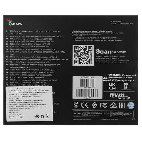 A-DATA ADATA SSD LEGEND 960, 1TB, M.2(22x80mm), NVMe 1.4, PCIe 4.0 x4, 3D NAND, R/W 7400/6000MB/s, IOPs 730 000/610 000, TBW 780, DWPD 0.43, with t Heat Sink (5 лет)